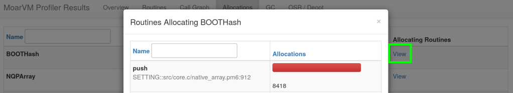 To know what produced the BOOTHash allocations (SPOILER: @a.push($item)), you can click on View :