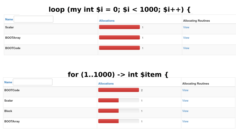 Remember it’s an empty loop, if you use $item in the body then the allocations number will increase a lot !