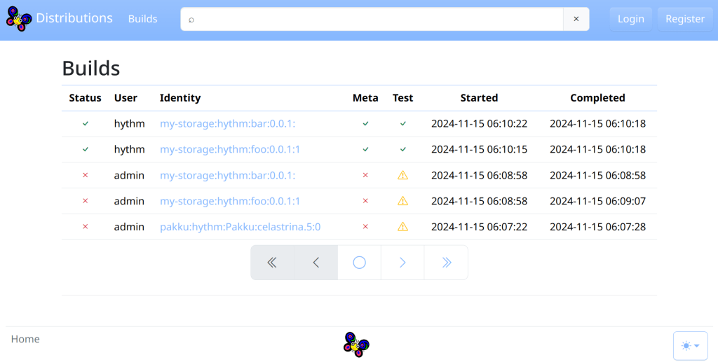 After an upload, the documentation of the uploaded distribution can be inspected using the web interface: