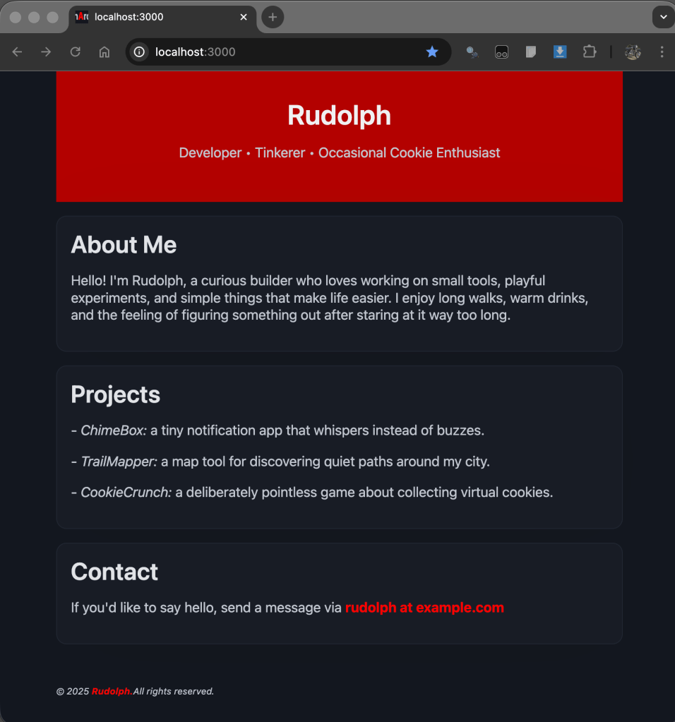 Here’s where we left off – with a complete single page website: