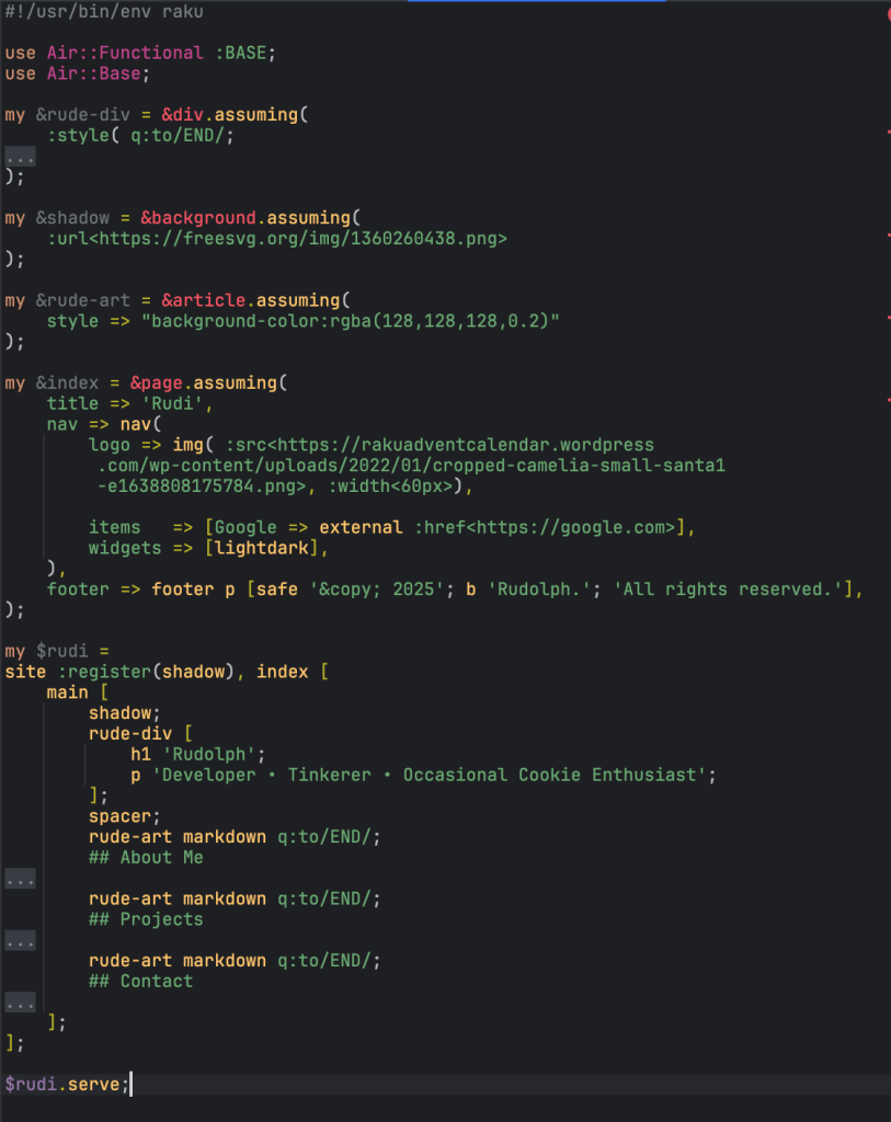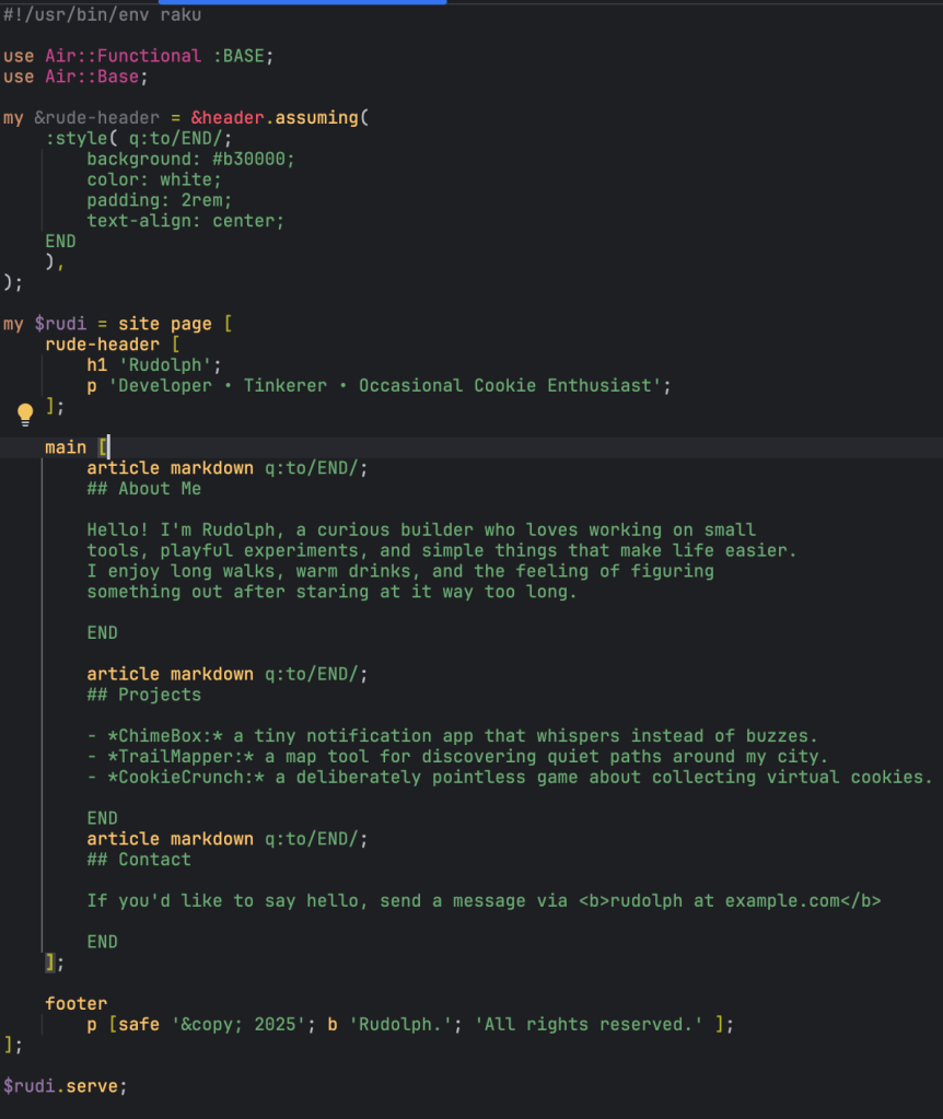 Need to float those blocks in the Air he pondered and sprinkled some CSS into his Raku: