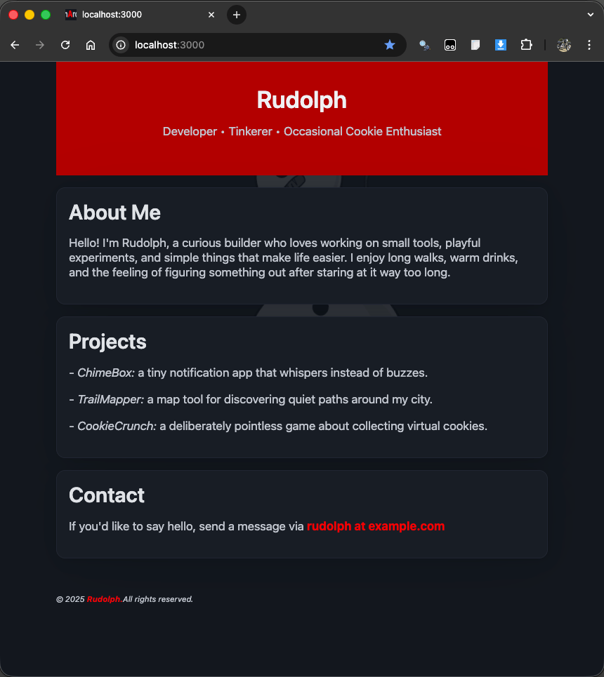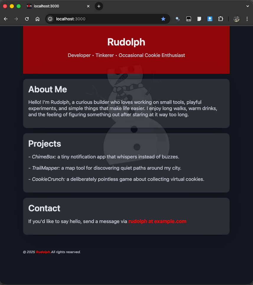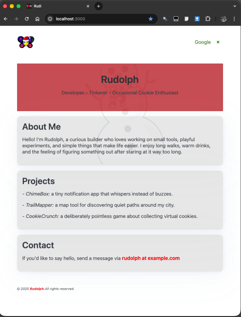 We left Rudi hanging by his hooves on Day 8. He had quickly whipped up his first website, but felt that more could be done to add some Christmas Decorations.